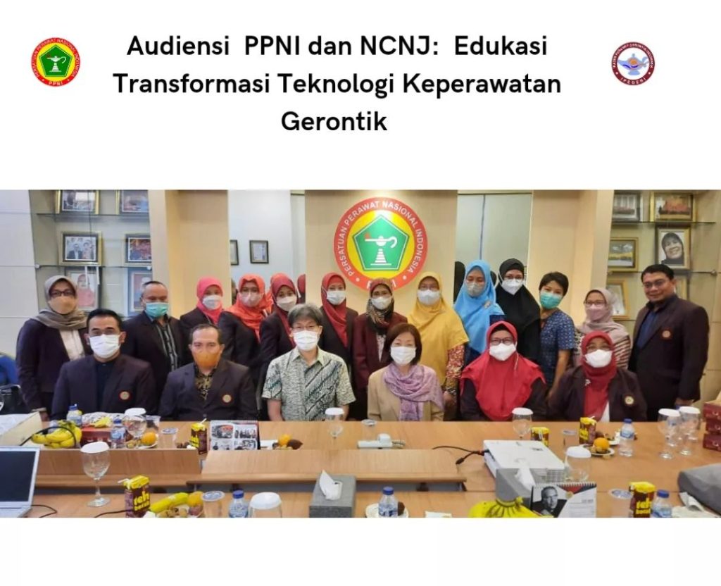 Ketua Umum DPP PPNI menerima audiensi dari National College of Nursing Japan (NCNJ) di Graha PPNI Jakarta. Turut mendampingi Ketua Pengurus Pusat (PP) Ikatan Perawat Gerontik Indonesia (IPEGERI) dan Sekretaris PP IPEGERI dalam audiensi ini. Tujuan dari audiensi ini diharapkan terjalinnya kerja sama dalam transformasi teknologi yang memungkinkan perawat menghadapi pandemi COVID-19. Lansia merupakan kelompok rentan, sehingga dibutuhkan inovasi baru dalam meminimalisir penularan virus. Oleh karena itu, diharapkan kedepannya tercipta teknologi yang menjembatani optimalisasi peran perawat dalam malakukan asuhan kepada lansia sesuai dengan kondisi sebenarnya di masa pandemi COVID-19.